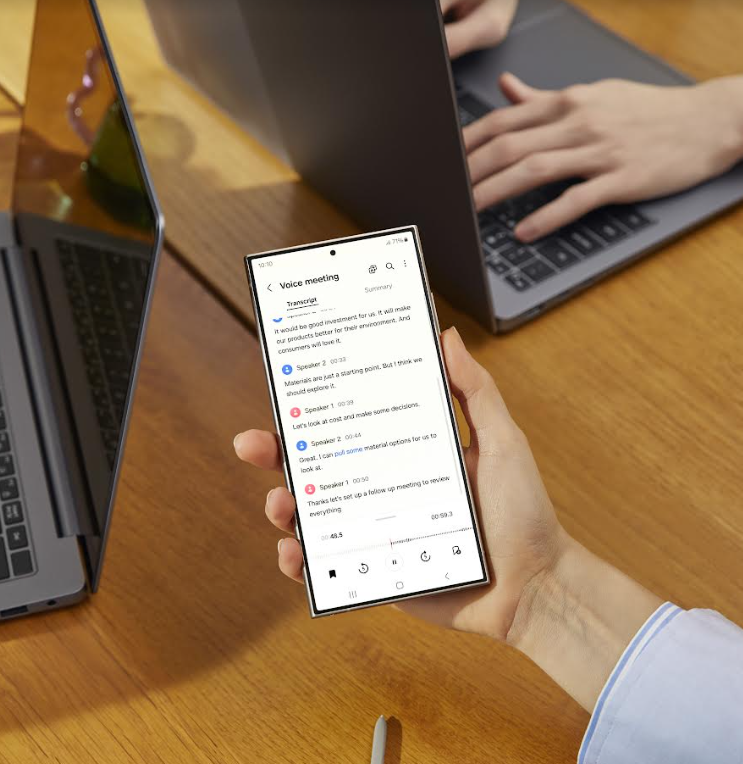 A favor del aprovechamiento estratégico del tiempo dedicado al trabajo y/o al estudio, hay funciones que llegan para hacer que todo sea más fácil y productivo. Interpreter te traducirá conversaciones en vivo sin datos ni Wi-Fi en una vista dividida; Android Auto trabaja para que recibas y respondas con mensajes resumidos de forma segura; la función Note Assist en Samsung Notes, pone a tu disposición plantillas y opciones para crear portadas; y tus notas de voz (de conversaciones, clases, conferencias y otros) puedes transcribirlas, traducirlas o resumirlas con Transcript Assist, con la ventaja de que si hay distintos hablantes en la grabación, los marca y diferencia.