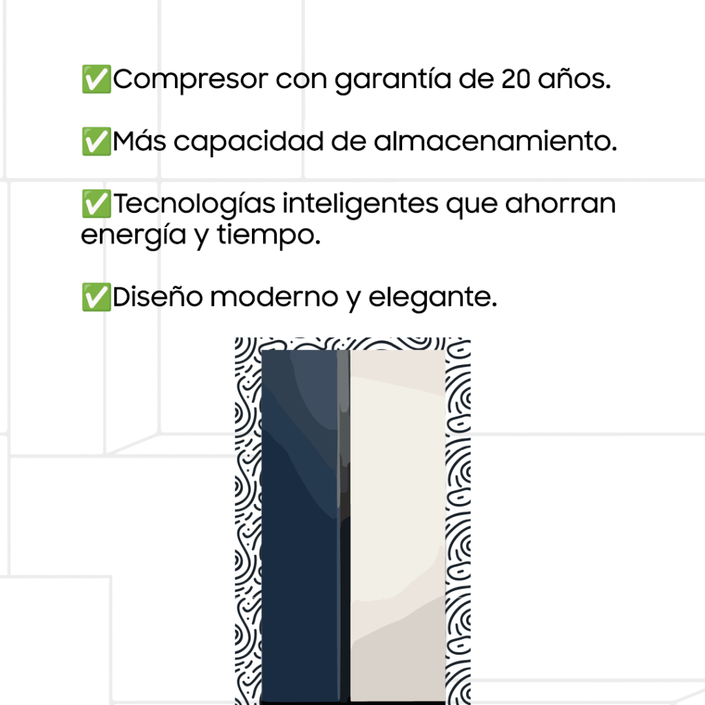 Las refrigeradoras Bespoke de Samsung están diseñadas no solo para conservar perfectamente tus alimentos en un amplio espacio, sino también cuentan con un compresor de 20 años de garantía, para que cuando la compres, sepas que estás haciendo una inversión segura a largo plazo.
