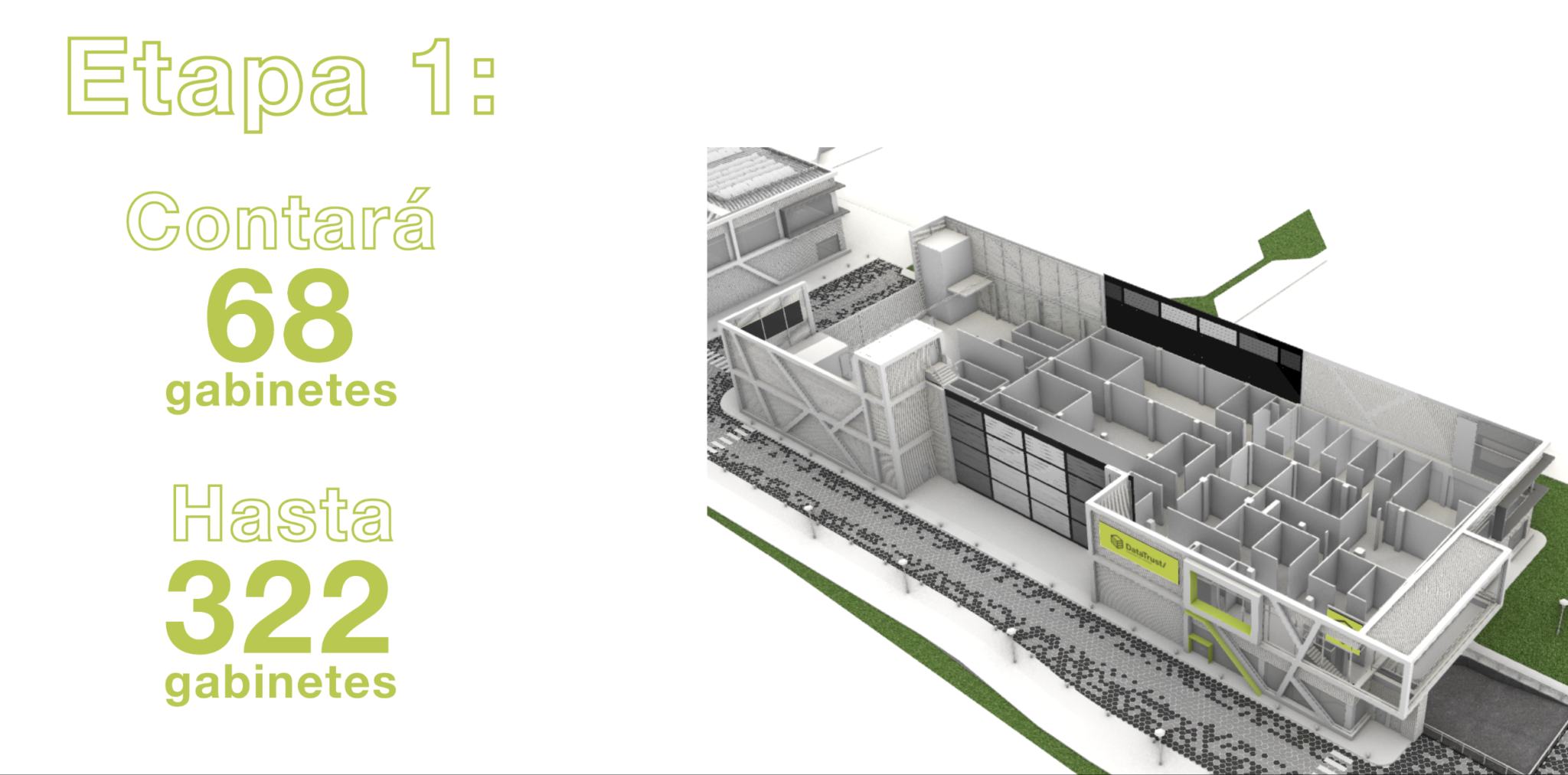 DataTrust, el primer centro de datos comercial certificado en El Salvador avanza con paso firme, esta incluye la obra gris cuya primera piedra fue colocada por el Presidente Nayib Bukele en noviembre del año 2021, la misma también incluye el equipamiento de las primeras salas de datos, con capacidad para 66 racks o gabinetes (espacios para albergar equipos tecnológicos), más los servicios en la nube.