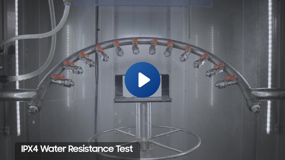 – 0:41~0:48: Prueba de resistencia al agua IPX4.