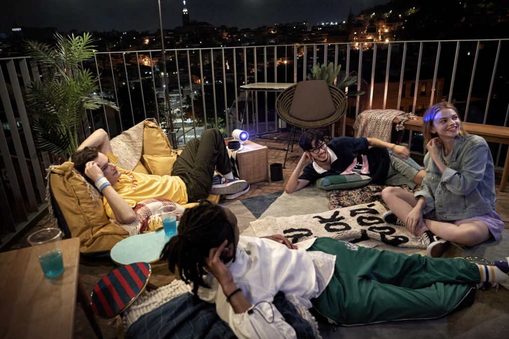 Además, con su calidad Full HD, The Freestyle 2da Gen no te va defraudar si quieres ver todo en grande: con la función Smart Edge Blending y mediante el uso de la app SmartThings, puedes conectar dos The Freestyle 2ª Gen y ver las escenas en una pantalla 160 pulgadas en horizontal. Combinada con el sonido premium 360 transformará cualquier espacio en una sala de cine, porque la capacidad de los altavoces se duplica y se intensifica el sonido estéreo de cada dispositivo.   Añade que puedes conectar dos juegos de auriculares Bluetooth a The Freestyle y disfrutar del sonido sin molestar a los demás.