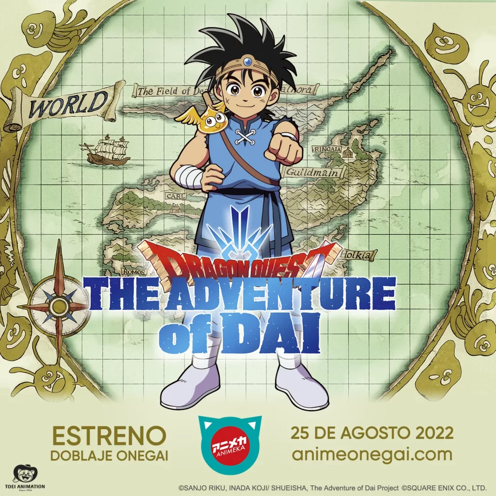 Anime Onegai por ANIMEKA, la única plataforma de anime directa de Japón para Latinoamérica, anuncia que a partir de hoy 25 de agosto la serie “DRAGON QUEST: The Adventure of Dai” está disponible en su catálogo doblada completamente al español latinoamericano.