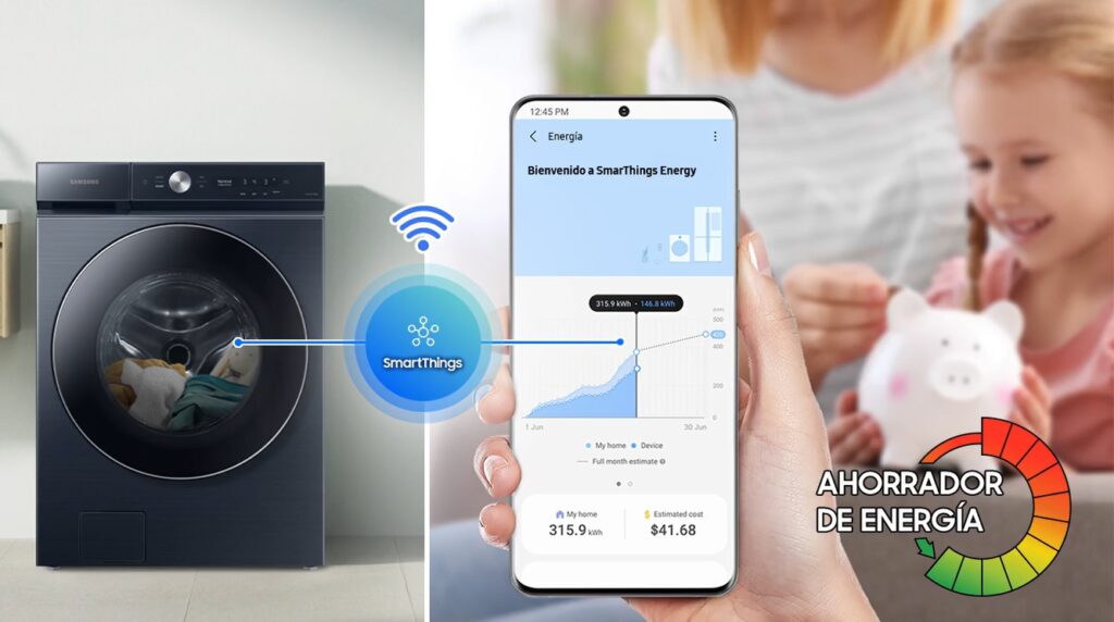 Usando SmartThings, se puede programar la secadora para que inicie un ciclo de secado a la hora que se prefiera, o incluso determinar la hora de finalización. Así, la secadora inicia el ciclo en el tiempo necesario para finalizar dentro de lo programado, mediante el uso de inteligencia artificial. El resultado permite llegar a casa y encontrar la ropa limpia, y así tener más tiempo para disfrutar de momentos en familia.