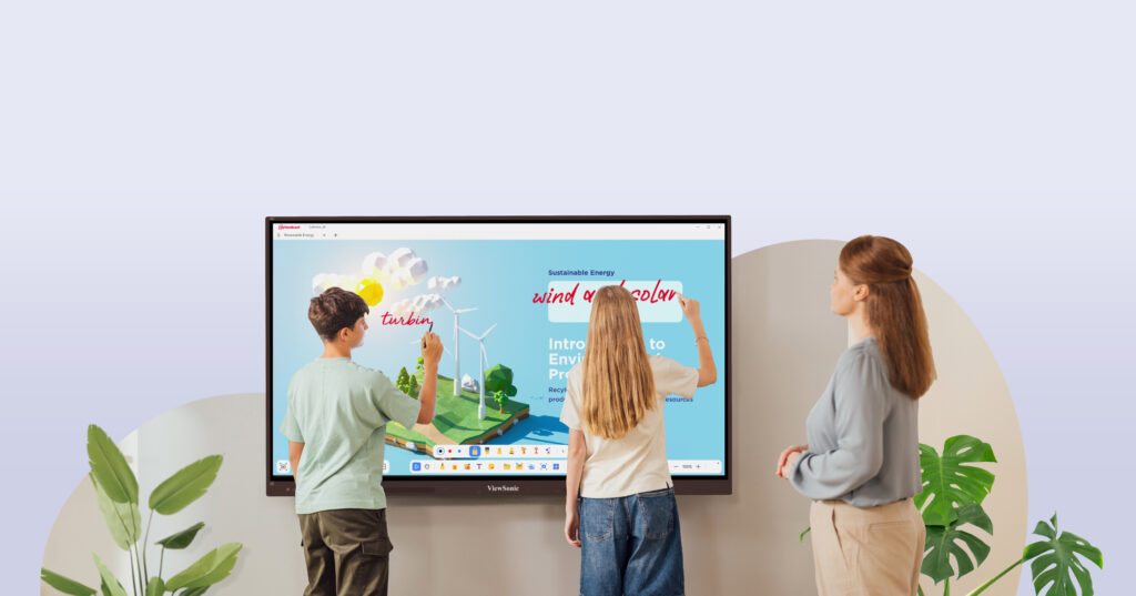 La serie IFP34 incluye el software myViewBoard®, AirSync® y otras herramientas educativas galardonadas que permiten realizar exámenes y anotaciones en tiempo real, así como compartir contenido de forma inalámbrica, tanto en clases presenciales como virtuales. Gracias a sus 40 puntos táctiles y tecnología de rechazo de palma, varios usuarios pueden escribir o dibujar simultáneamente con dedos o lápices sin interrupciones, logrando una experiencia natural, similar a la escritura en papel.